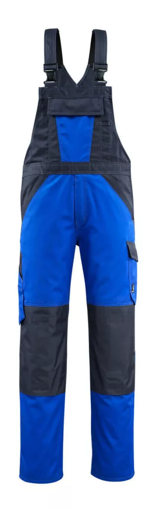 Light fabric. Two-toned. Triple stitched seams at leg and crotch. Ergonomically formed trouser leg. Adjustable straps with a short and strong elastic and plastic buckles. Large bib pocket with pen opening, phone pocket and flap with hidden press studs. Adjustable waist. Fly with zip. Front pockets. Back pockets with flap. Thigh pocket with flap and hidden press studs. Ruler pocket with reinforced opening. Adjustable polyester kneepad pockets. Contrast stitching. Reflectors. Co-certified together with kneepad type large in accordance with EN 14404-3.