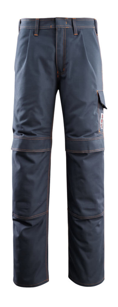 Anti-static, acid-protective and flame retardent PyroPro®. Protects from electric arcs and occasional welding arcs. The surface treatment makes the product dirt-repellent. Triple stitched seams at leg and crotch. Belt loops. Fly with zip. Front pockets. Back pockets with flap and hidden press studs. Thigh pocket with flap and hidden press studs. Ruler pocket. Adjustable knee pad pockets with flap and top access. Seams face downward so sparks can not get lodged in. Contrast stitching. Co-certified together with kneepad type large in accordance with EN 14404-3.